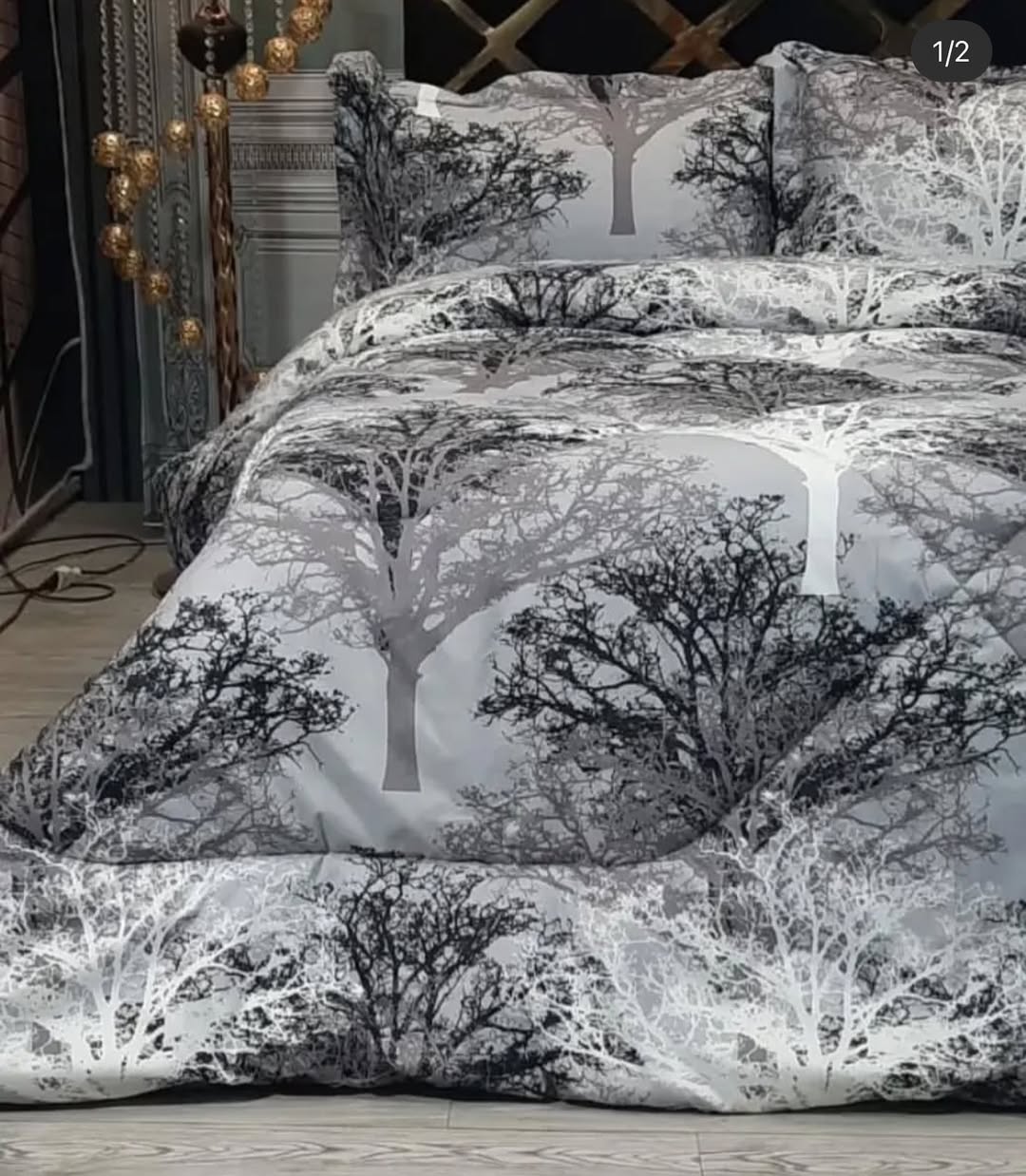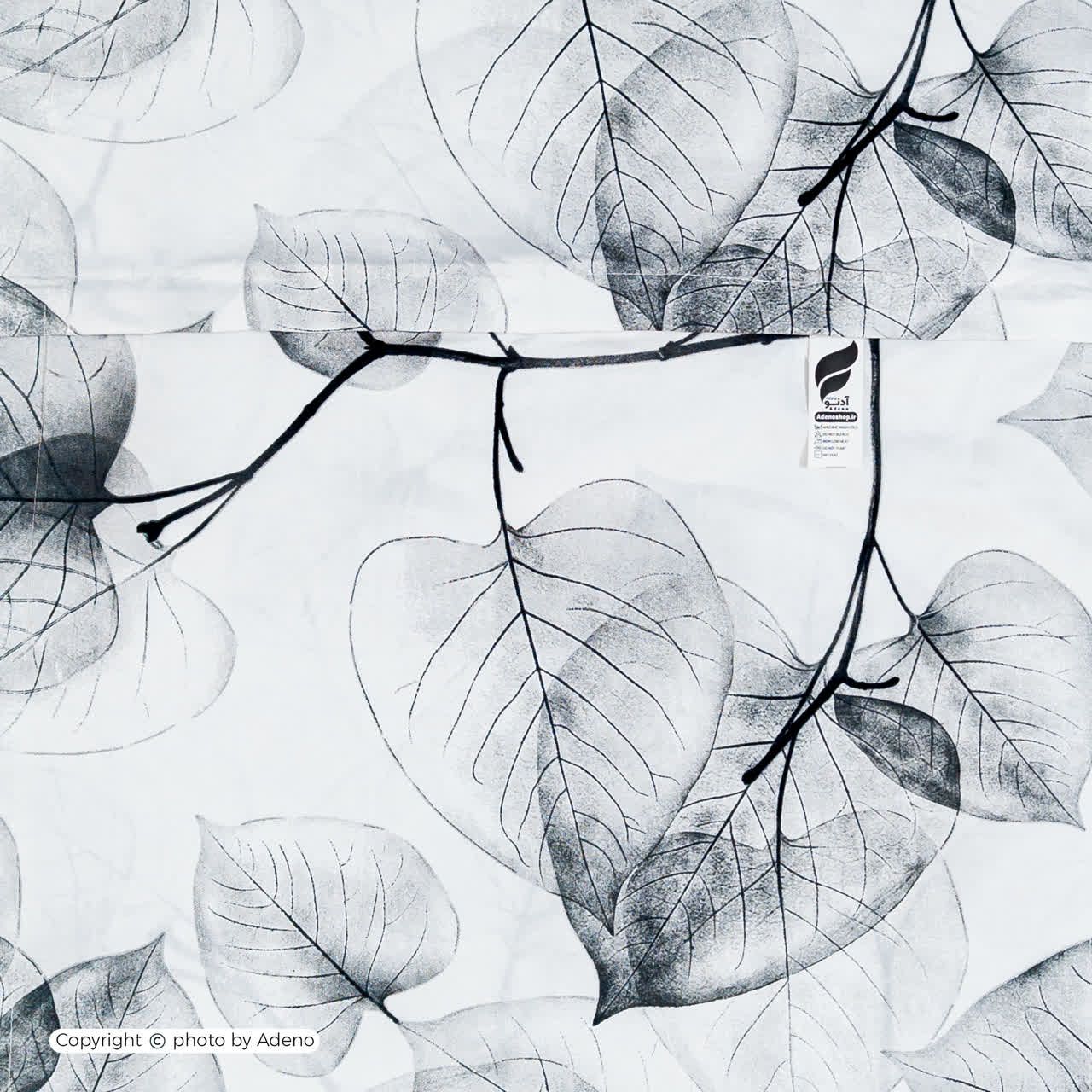پارچه ملحفه طرح درختی مشکی وسفید عرض 240