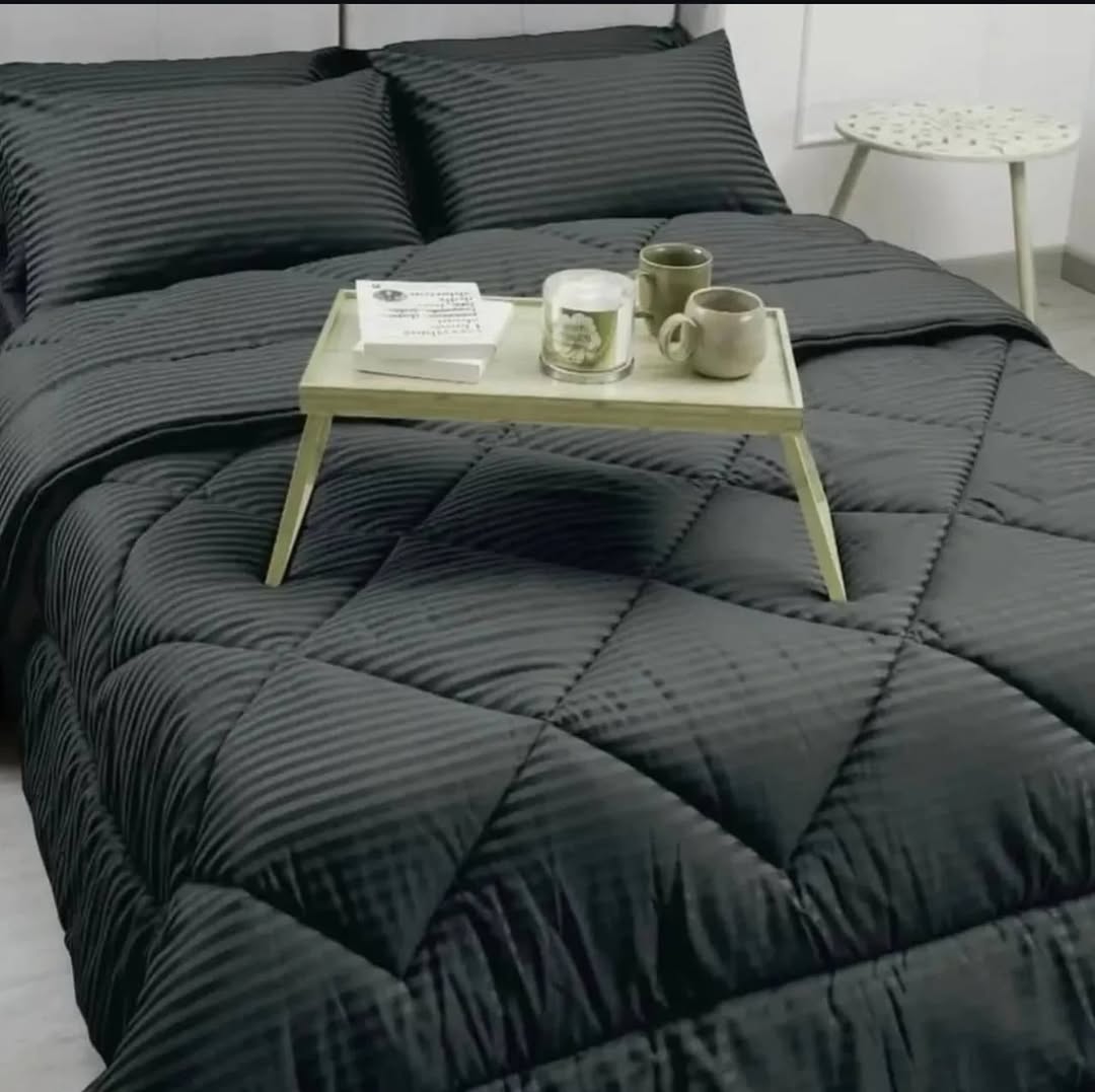 نیم ست روتختی خواب ملحفه کشدوز هتلی راه راه مشکی ترک