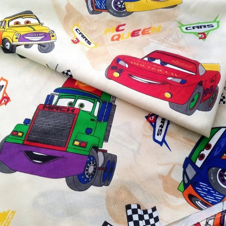 این محصول احتمالاً پارچه ملحفهای یا پارچه برای دوخت لوازم کودک (مانند پرده، روکش بالشیا روتشکی یا روکش صندلی) با طرح شخصیتهای محبوب انیمیشن "ماشینها" است.