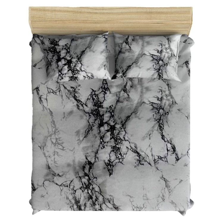 نیم ست روتختی ملحفه کاور دور کش رنگ سفید ماربل جنس ترک
